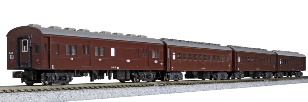 ・扉配置が独特なスユニ60と客車3両をアソートしたお手軽な茶色の旧形客車セット