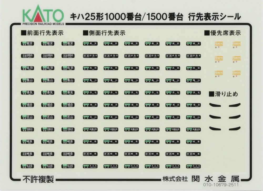 ・優先席表示、先頭車前面の滑り止めなどを収録した行先表示シールを付属