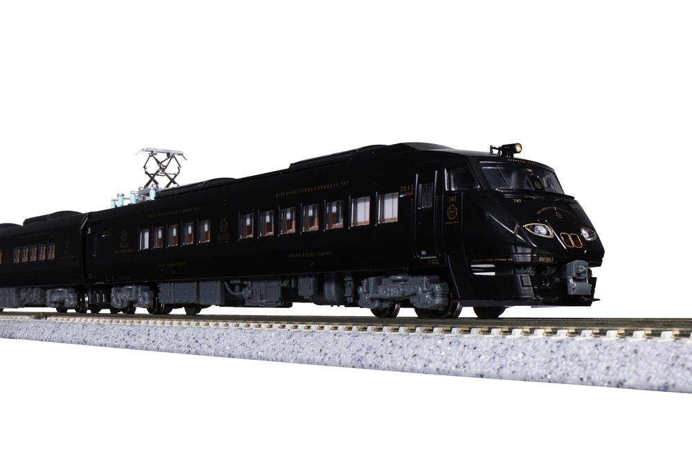 787系の一編成を改造し、光沢ある漆黒のボディに金色の装飾をあしらった