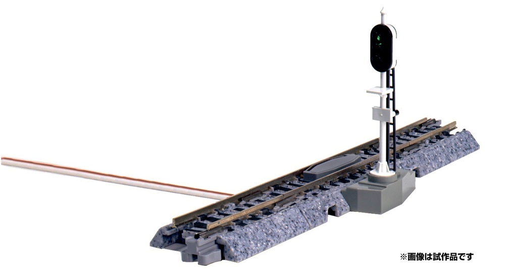 信号機本体の直線線路は64mm長を採用し、従来よりも信号設置場所の自由度が上がるほか、付属の補助線路と組み合わせることで従来製品同様の