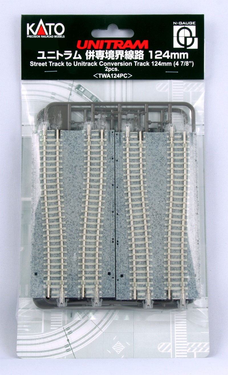 ユニトラムとユニトラックの複線間隔を相互に乗り入れさせる境界線路が2個入っています。専用架線柱付属。