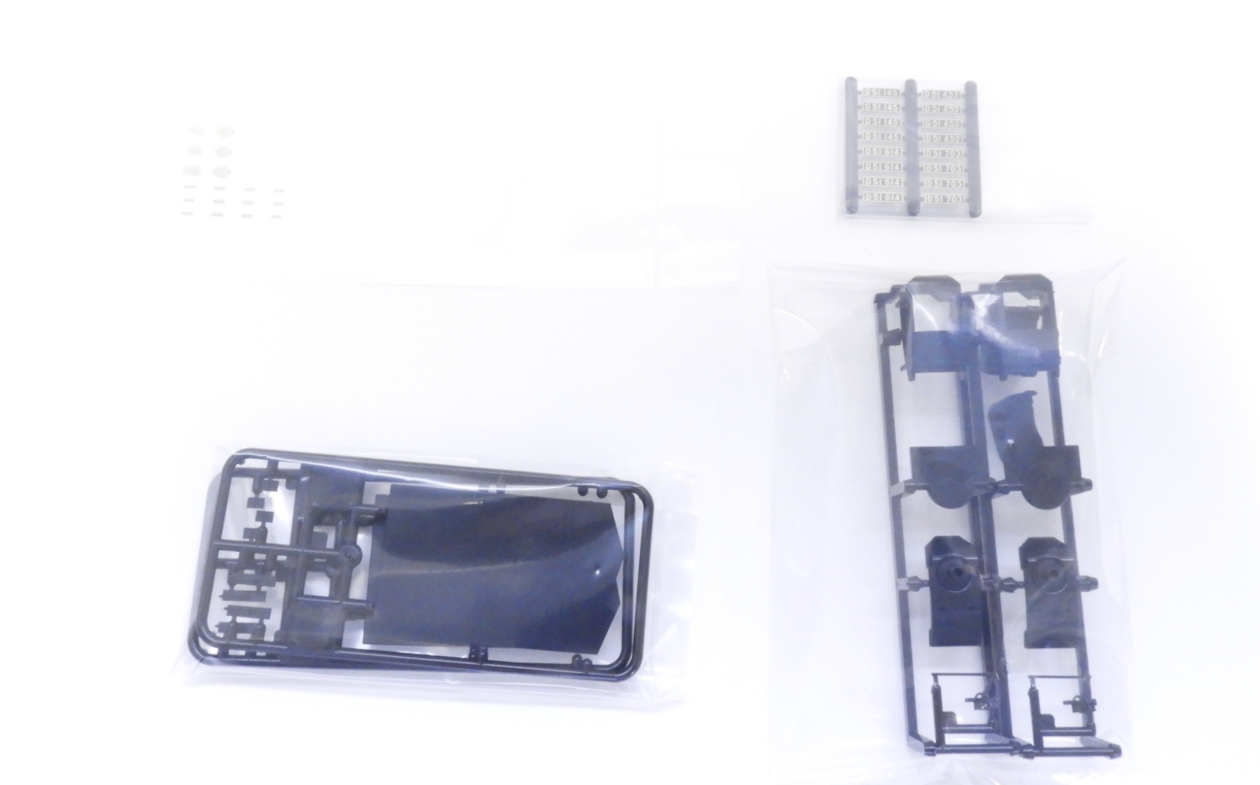 重油タンク(鷹取形650リットル)×2、札差(2連)×4、炭庫底板×2、ナンバープレート:「145」「452」「614」「703」×各1組、レタリングシート(砲金色+白色)×1