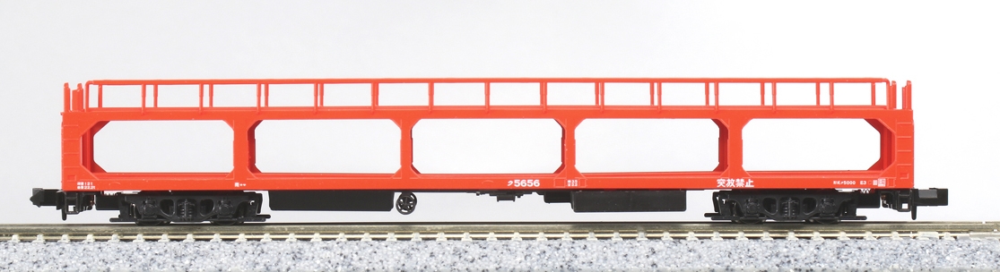 昭和40年代に自動車輸送用として全国で活躍したク5000を、リニューアルして製品化いたします。 ク5000は日本の自動車生産台数が増加の一途をたどっていた昭和41年(1966)に、自動車輸送の定型化を図って登場した車運車です。瞬く間に国鉄貨物輸送の花形として君臨し、最盛期には専用特急(のちに急行)列車の「アロー号」が運転され、最大20両編成の専用列車が全国各地で活躍しました。 手スリの造形など、細部のディティールを見直し、KATO最新の技術を用いて新規金型でリリースいたします。積載用の自動車も実際に見られた、保護用シートを被せた状態を再現した車載用アクセサリーを同時発売いたします。