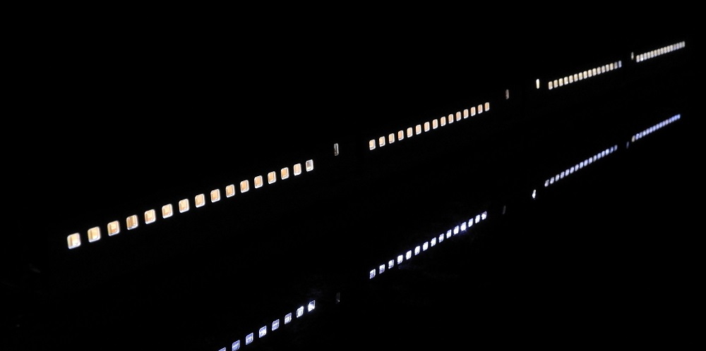 ・ヘッドライトは粒状に配列されたLEDを、テールライトは運転台上に6灯で点灯する様子を再現