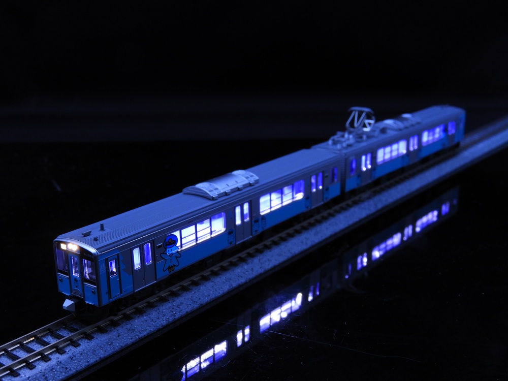 品番:10-156210-1562 青い森鉄道 青い森701系(新ラッピング)2両セット に室内灯と付属パーツを取り付けました。