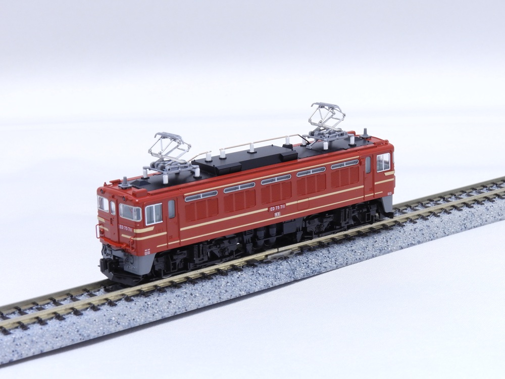 ED75は、国鉄の標準形交流電気機関車として昭和38年(1963)に登場し、D形ながらF形直流電気機関車に匹敵する牽引力を 有する貨客両用機関車です。 700番台は奥羽本線の秋田〜青森間の電化に伴って昭和46年(1971)から91両が製造されました。 日本海海岸線を走行することから、耐塩害・耐寒・耐雪を考慮して特高機器を車内に収めたことや、 着雪が少ない下枠交差式のパンタグラフなど、すっきりとした屋根上が大きな特徴です。 国鉄時代末期には一部の車両がジョイフルトレイン「オリエントサルーン」牽引用として特別塗装が施され、 同列車をはじめとする各ジョイフルトレインや、「あけぼの」などのブルートレイン、「オリエントエクスプレス’88」などの 先頭に立って活躍しました。