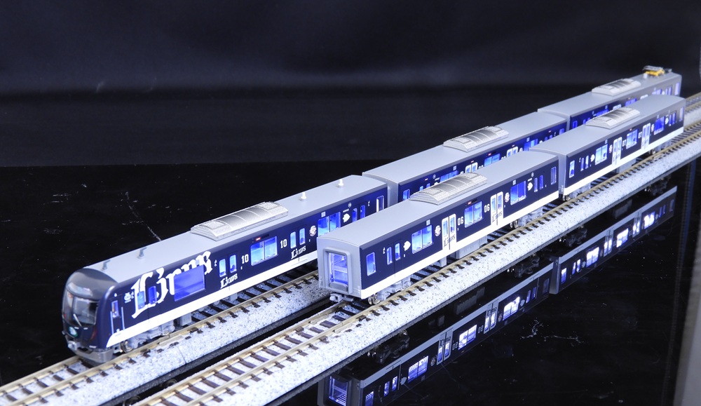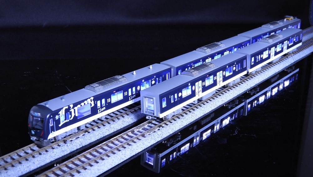 西武鉄道と埼玉西武ライオンズのコラボレーションラッピング電車「L-train(エルトレイン)」の四代目編成を再現した特別仕様です。