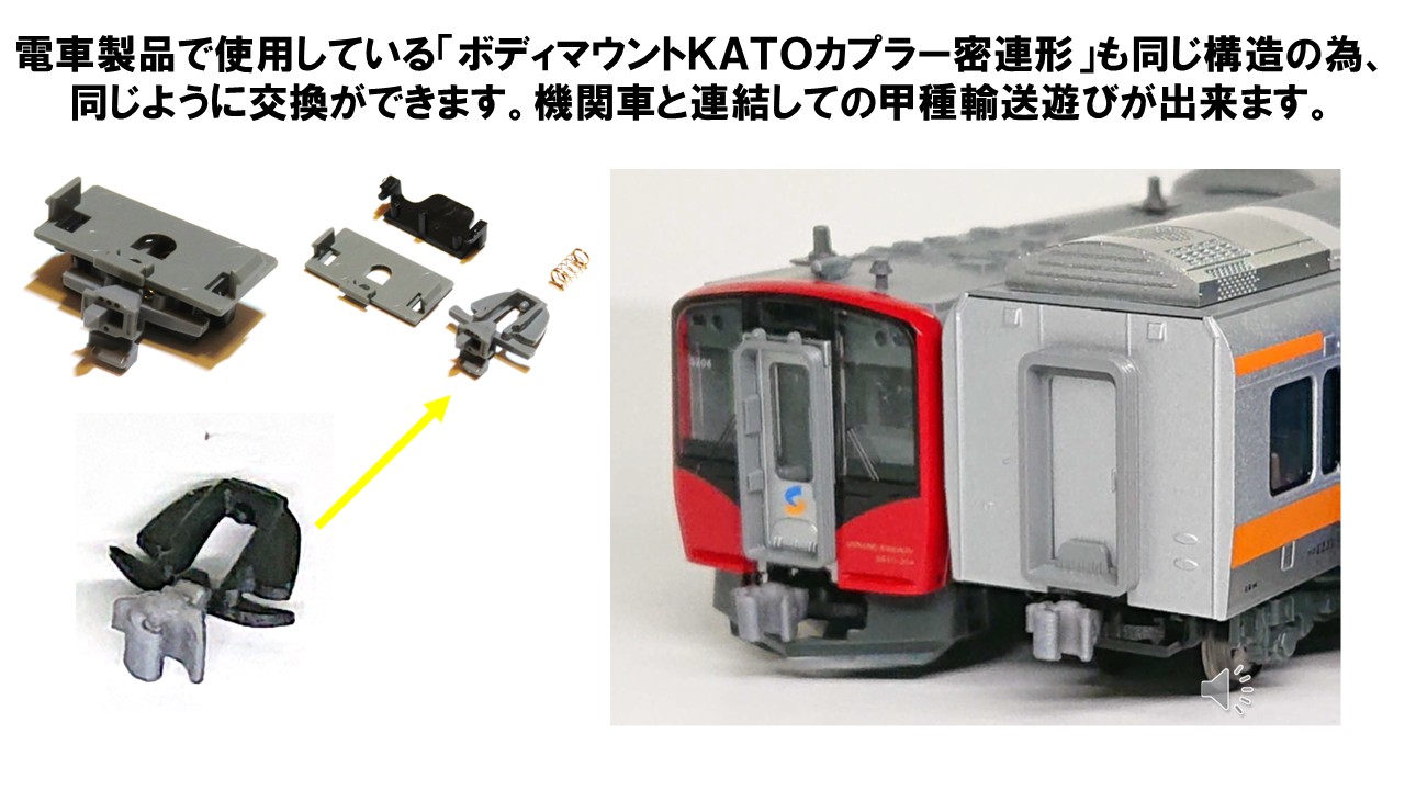 これまでは、ナックルカプラーと"ボディマウント"密連形カプラーは連結ができませんでしたが