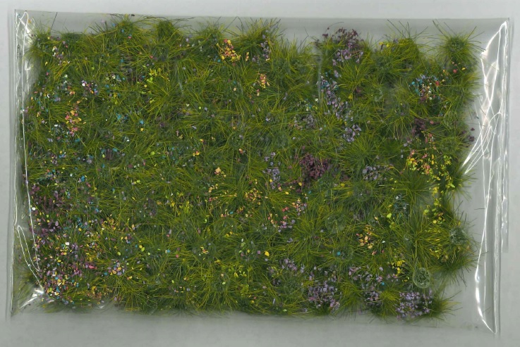 4mmの緑色の繊維で作られた花壇に、9mmの色の繊維が植毛されています。
