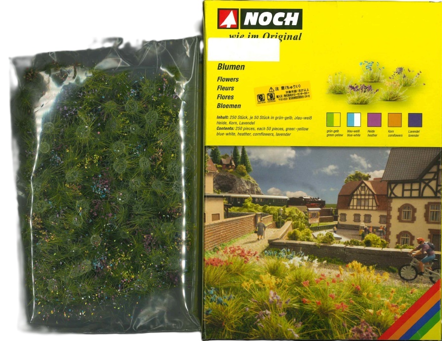こうして、驚くほど自然な花壇を模型で再現することができます。2つのセットにはそれぞれ、5色の花が合計250本入っています。